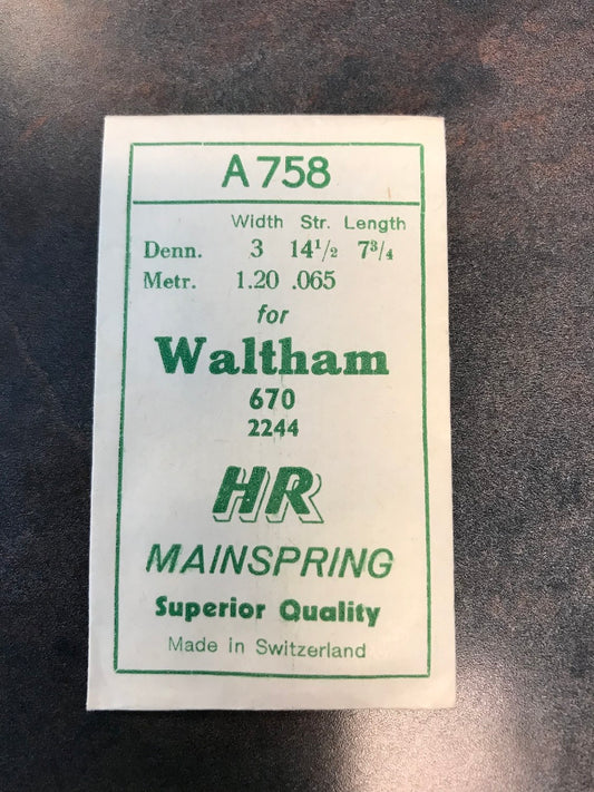 Waltham Factory Mainspring for Model 670 Watches No. 2244 - Steel