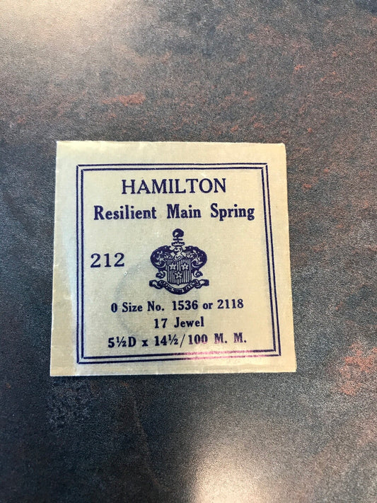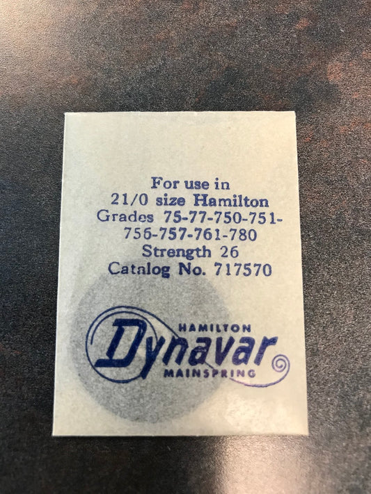 Hamilton Factory Dynavar Mainspring for 20/0 & 21/0s Hamilton No. 717532 - Alloy