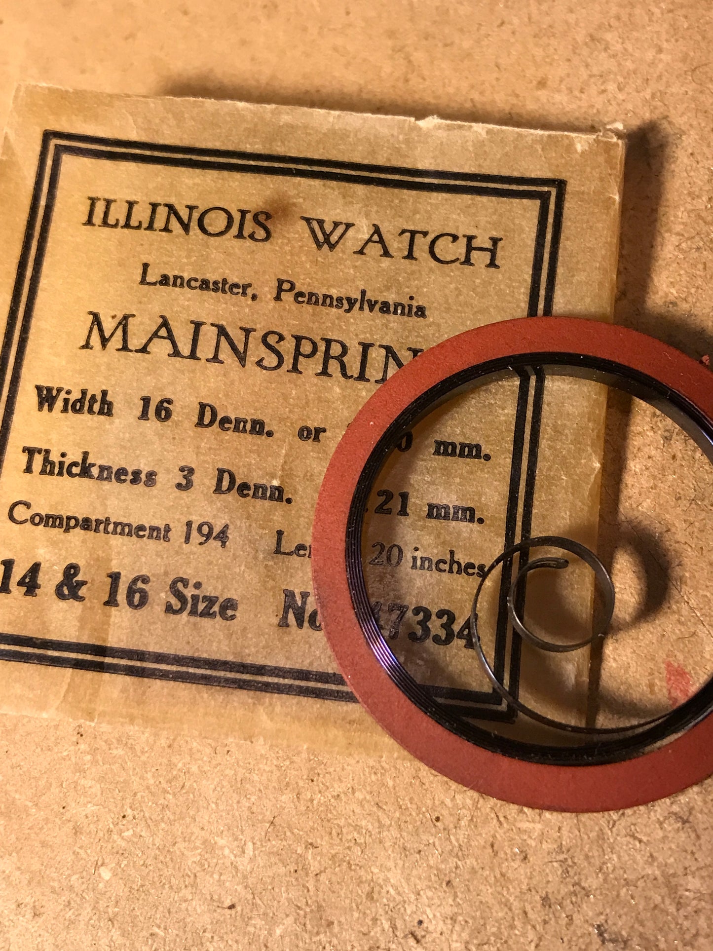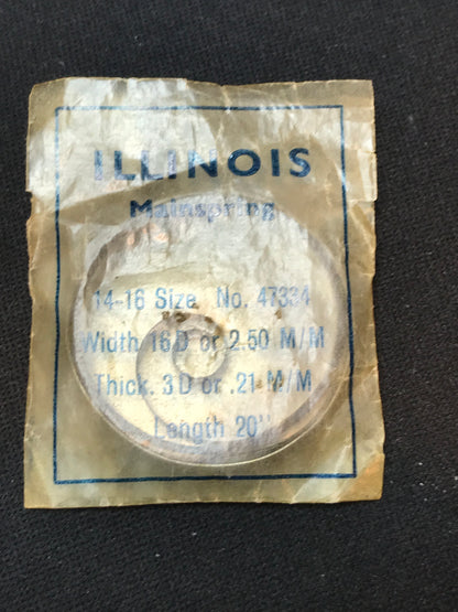 Illinois Factory Mainspring No. 47334 for 14s & 16s movements - Steel