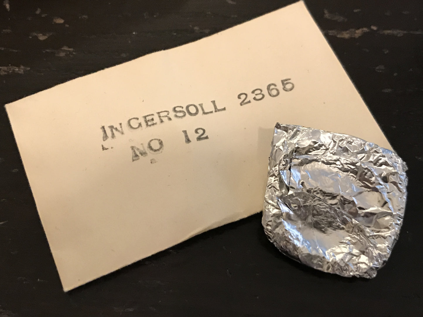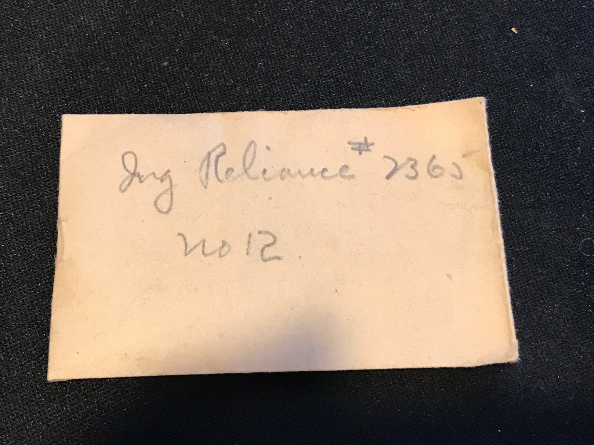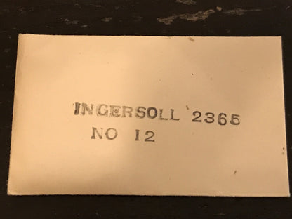 Ingersoll Mainspring for Reliance Pocket Watch, Factory No. 2365, steel, hole end, new in envelope. Measures Dennison 12 x 12-1/2 x 18-1/2. Distributed by Hammel, Riglander & Co in New York, O.R. #12. Could also very well fit in other dollar watches as well. I likely have several of these so the one you get may differ slightly from the images. Images do a satisfactory job of representing the item.
