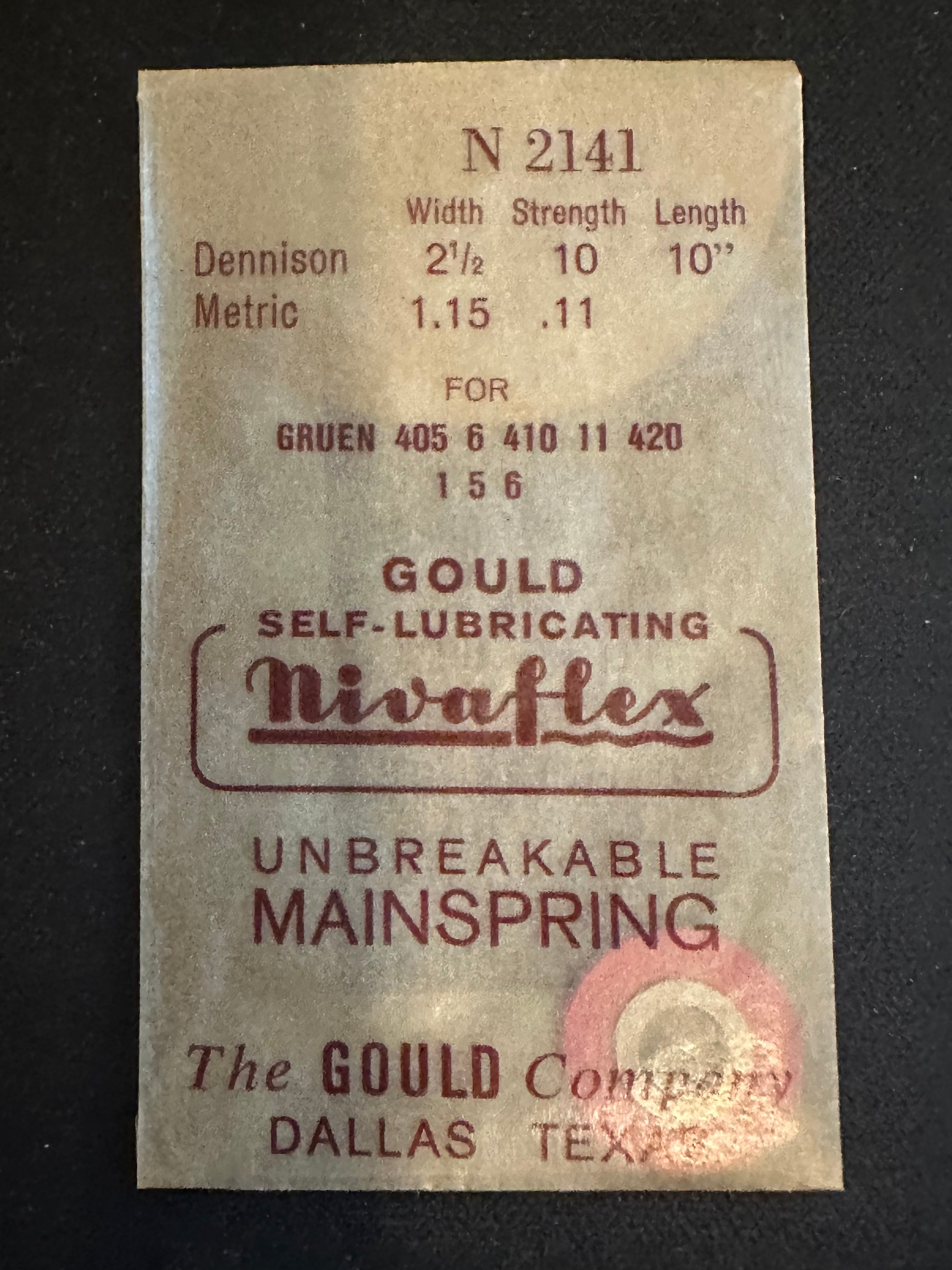 Nivaflex Unbreakable Mainspring N2141 for Gruen 405, 406, 410, 411, 420, 421, 425, 426 - Alloy