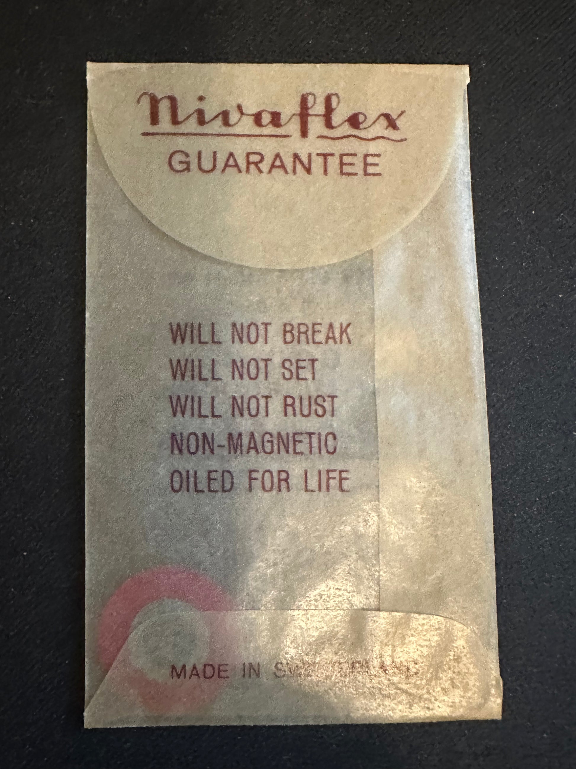Nivaflex Unbreakable Mainspring N 2141 for Gruen caliber 405, 406, 410, 411, 420, 421, 425, 426 plus perhaps other similar ébauche movements as well, alloy, new in envelope. See images for precise mainspring specifications. I specialize in hard to find watch parts so I usually have whatever you might need and all watch parts are unconditionally guaranteed. Images do a pretty good job of representing the item.