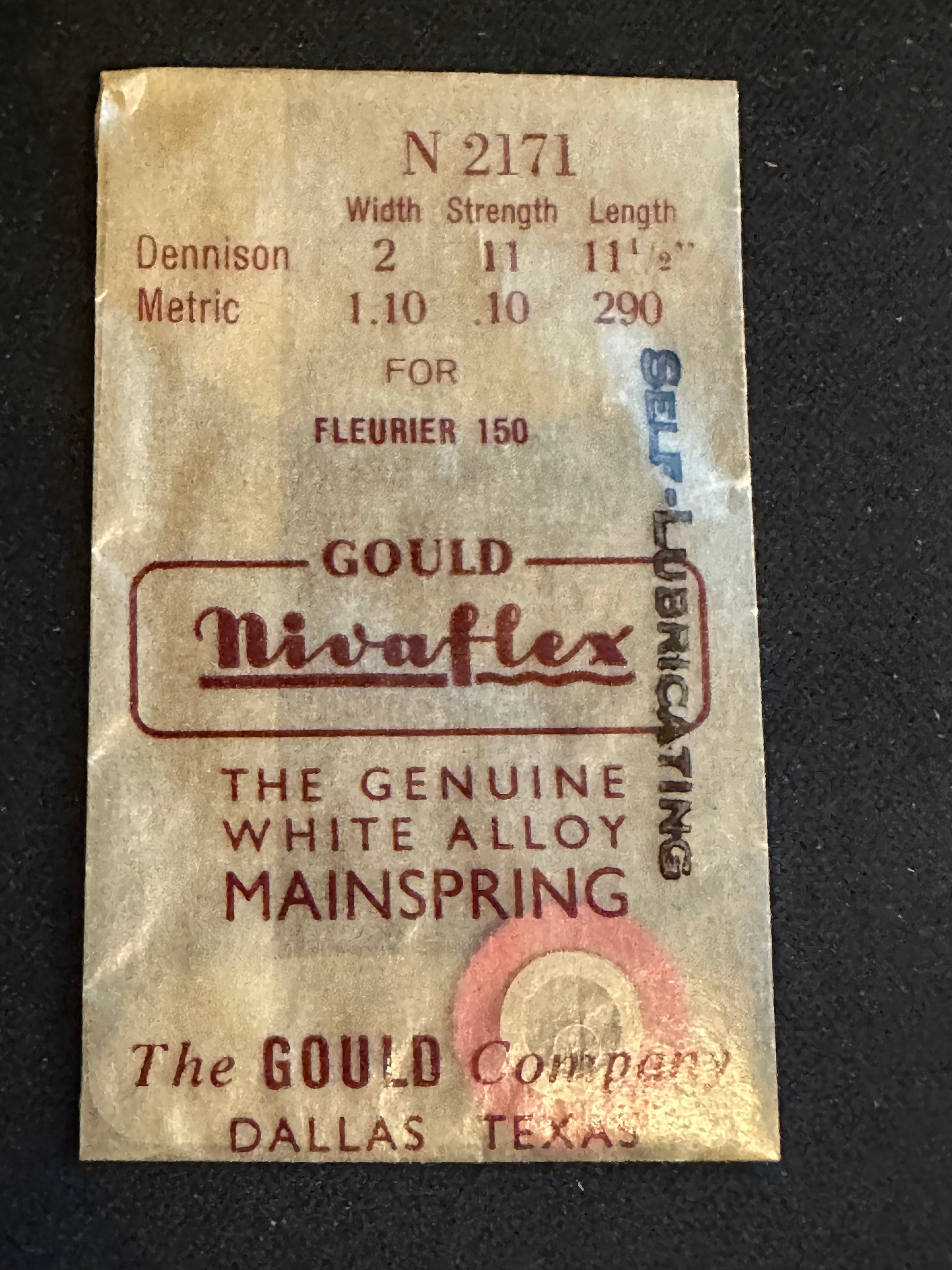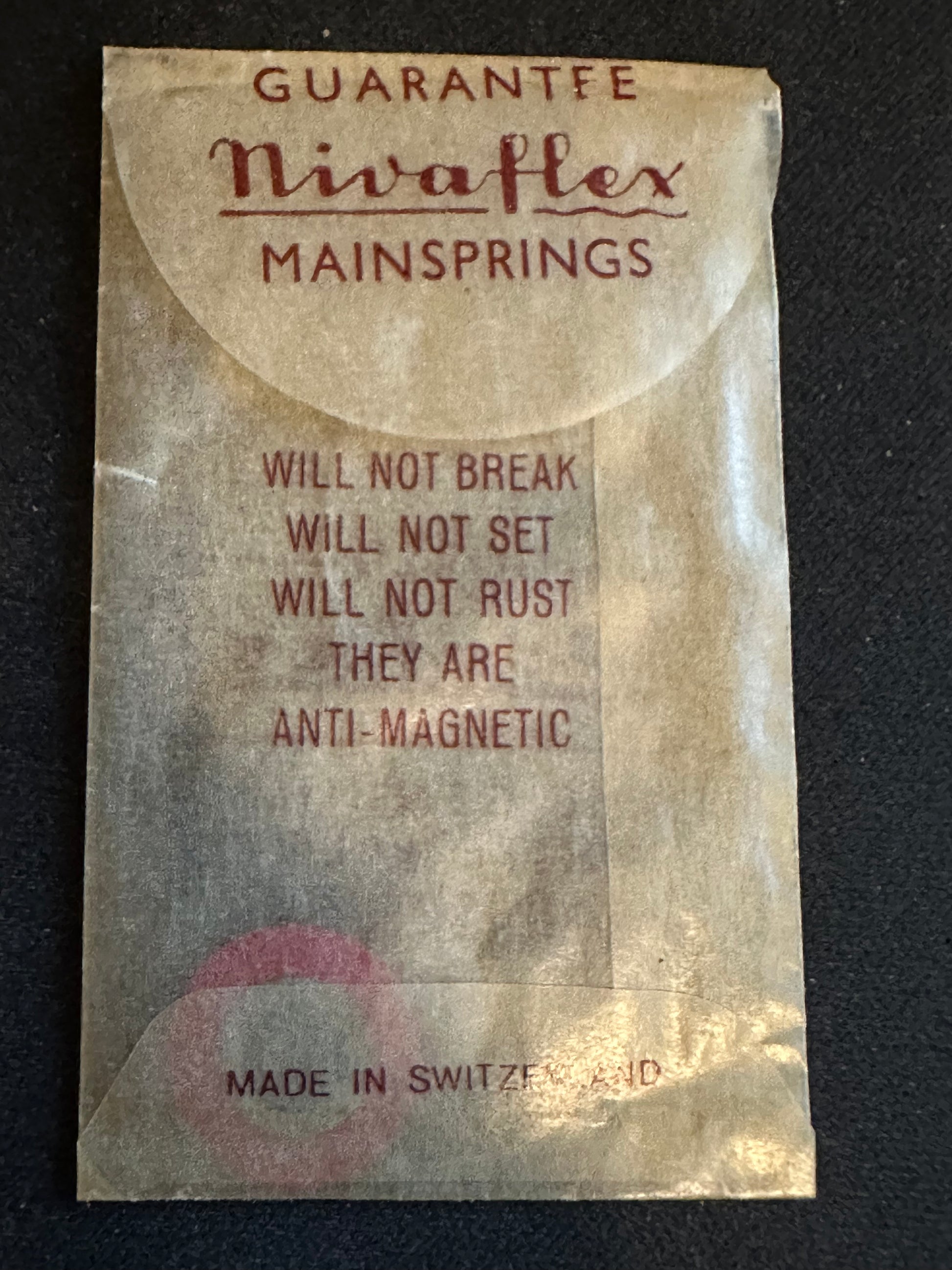 Nivaflex Unbreakable Mainspring N 2171 for Fleurier caliber 150 movements plus perhaps other similar ébauche movements as well, white alloy, new in envelope. See images for precise mainspring specifications. Just a note about the Self Lubricating claim...I'm not convinced especially since all mainsprings should be cleaned thoroughly before installation. I specialize in hard to find watch parts so I usually have whatever you might need and all watch parts are unconditionally guaranteed. Images do a suitable job of representing the item.