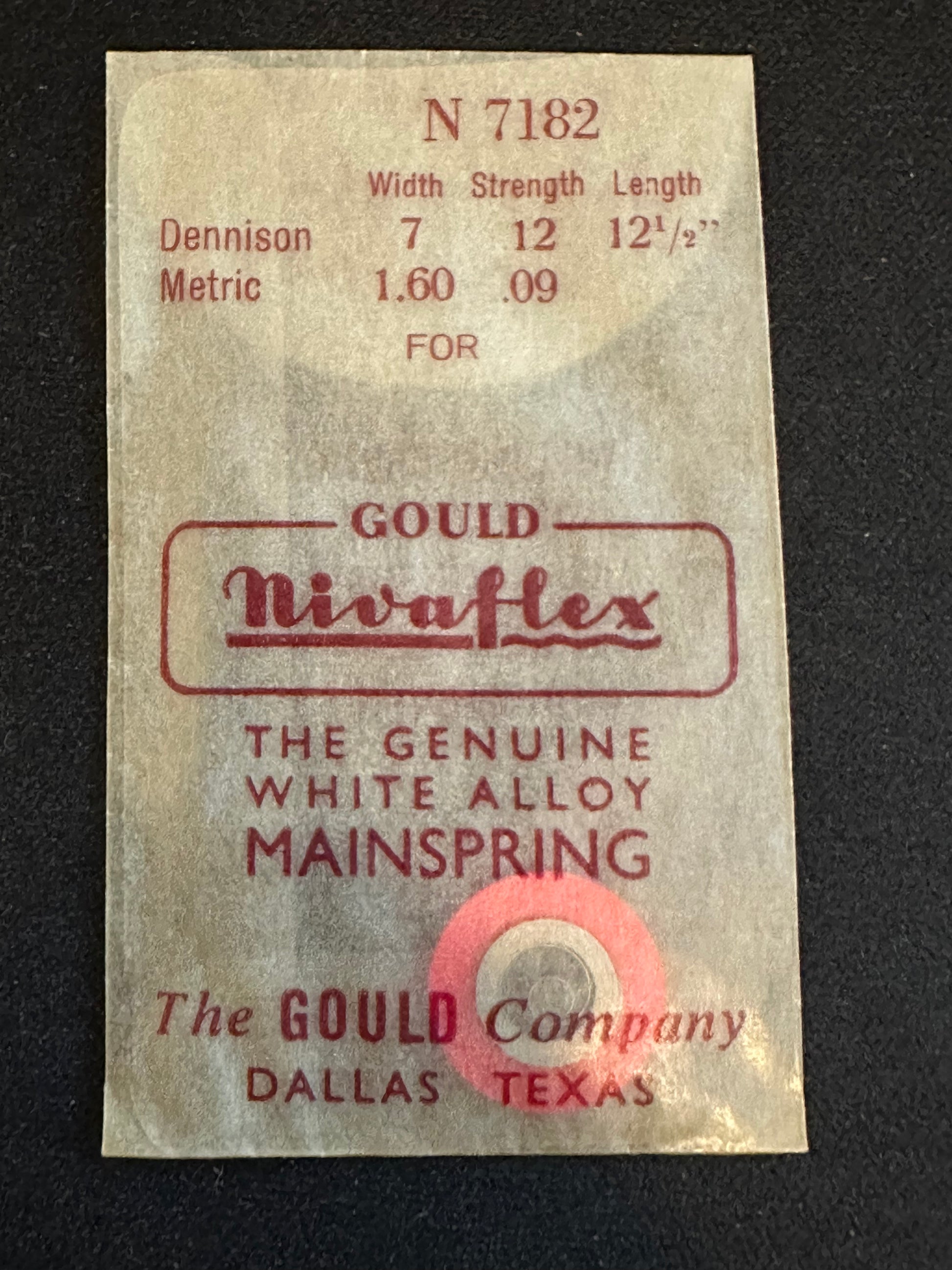 Nivaflex Unbreakable Mainspring N 7182 for Wittnauer 11 B/11 BG, C 11 BG, Mido 110, AS 933, 963 caliber movements plus perhaps similar ébauche watches, GR Ref. 4466, alloy, new in envelope. See images for precise mainspring specifications. I specialize in hard to find watch parts so I usually have whatever you might need and all watch parts are unconditionally guaranteed. Images do a pretty good job of representing the item.