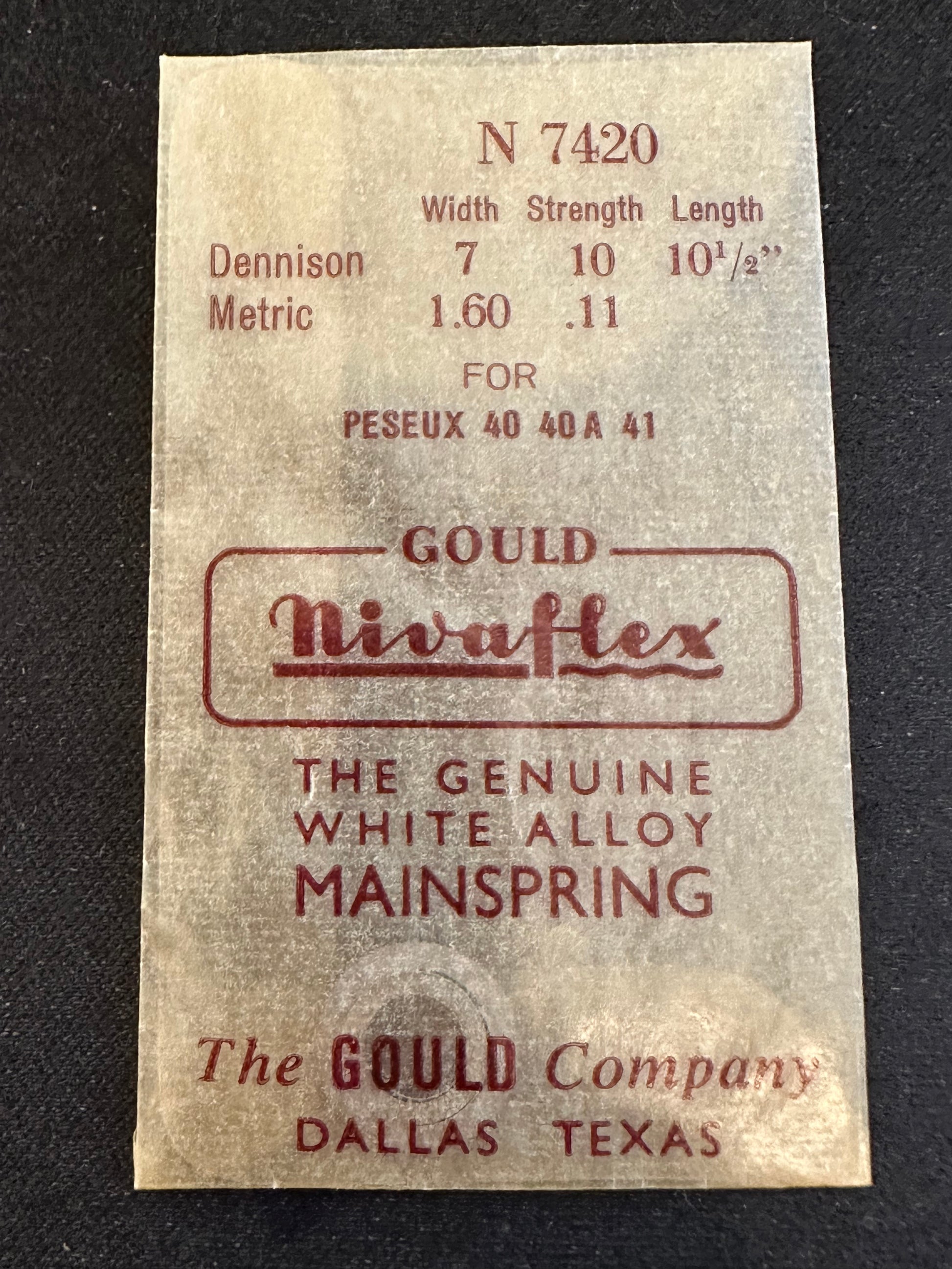 Nivaflex Unbreakable Mainspring N7420 for Peseux 40, 40A, 41 - Alloy