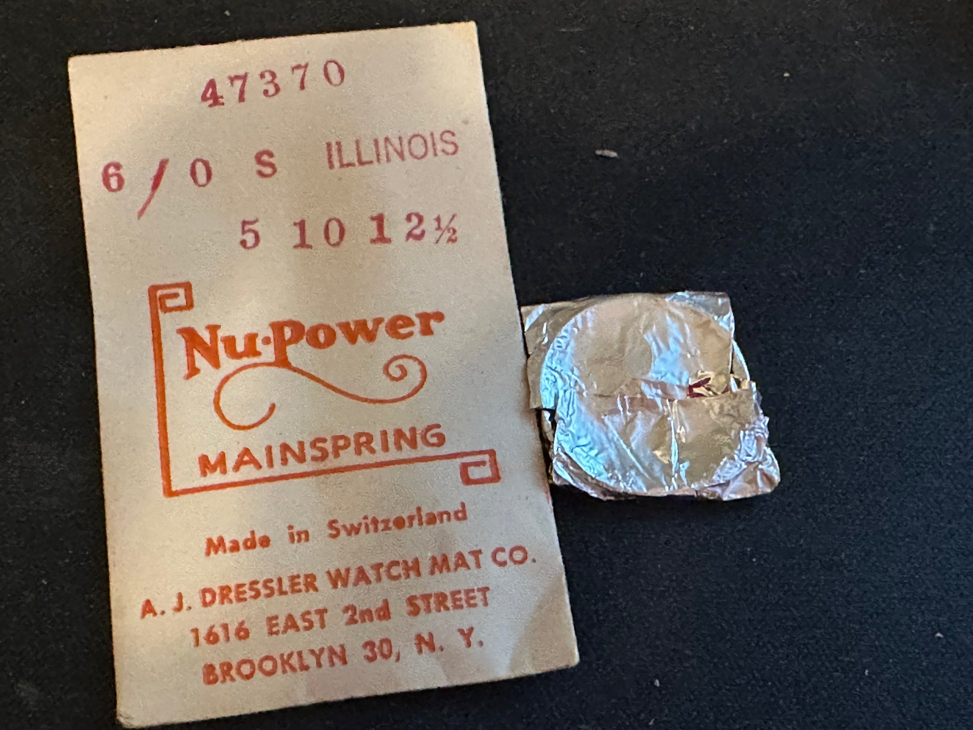 NuPower Mainspring for Illinois 6/0s Movements, Factory No. 47370, steel, new in envelope. See images for precise mainspring specifications. I specialize in hard to find watch parts so I usually have whatever you might need and all watch parts are unconditionally guaranteed. Images do a pretty good job of representing the item.