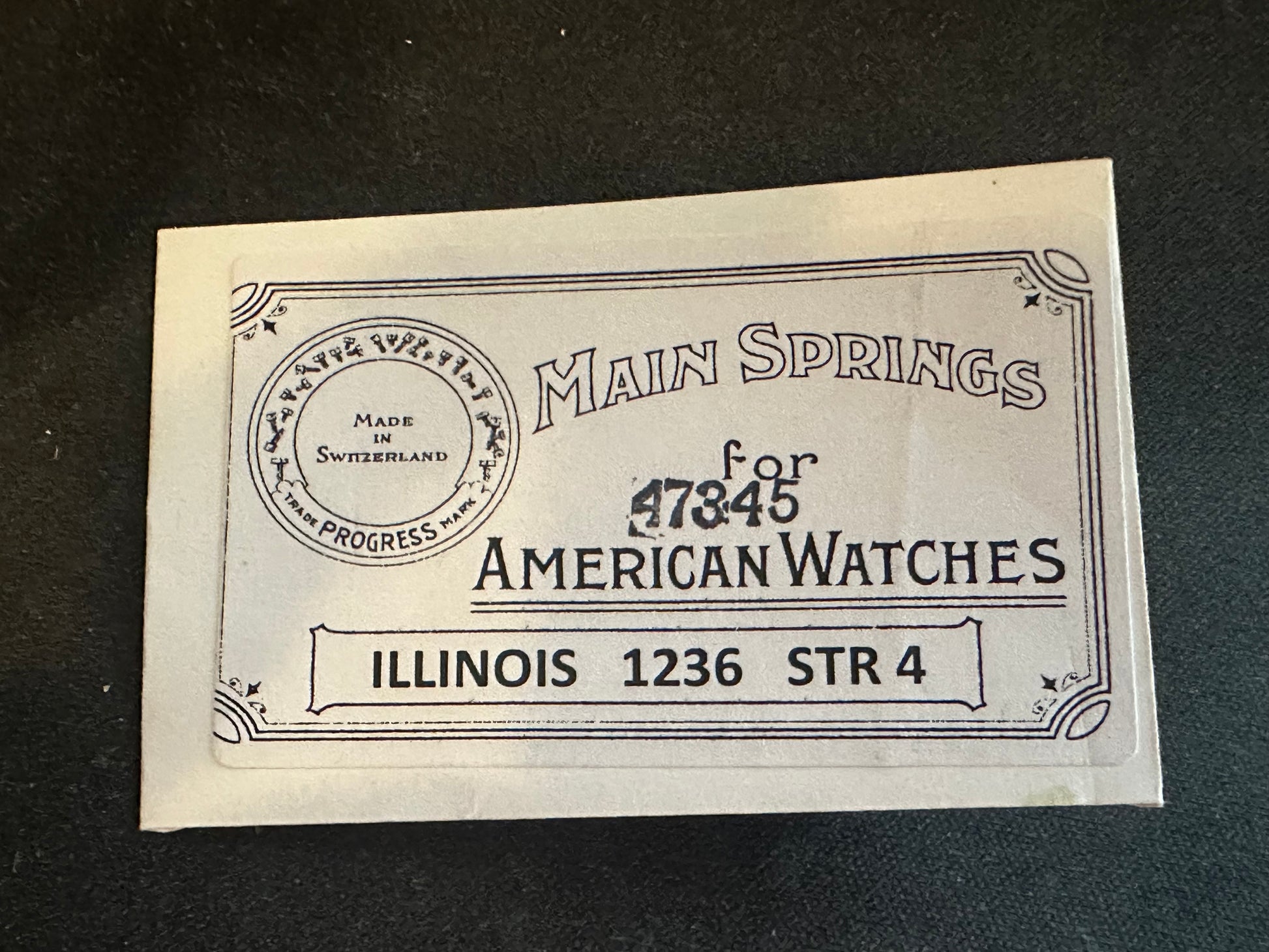Progress Mainspring for Illinois 12s movements, Factory No. 47345 (old # 1236), steel, new in envelope. See images for further details. Dennison 11 x 4 x 19½ and is not an easy number to find. I likely have several of these so the one you get may differ slightly from the images. I specialize in hard to find watch parts and all watch parts are unconditionally guaranteed. Images do a pretty good job of representing the item.