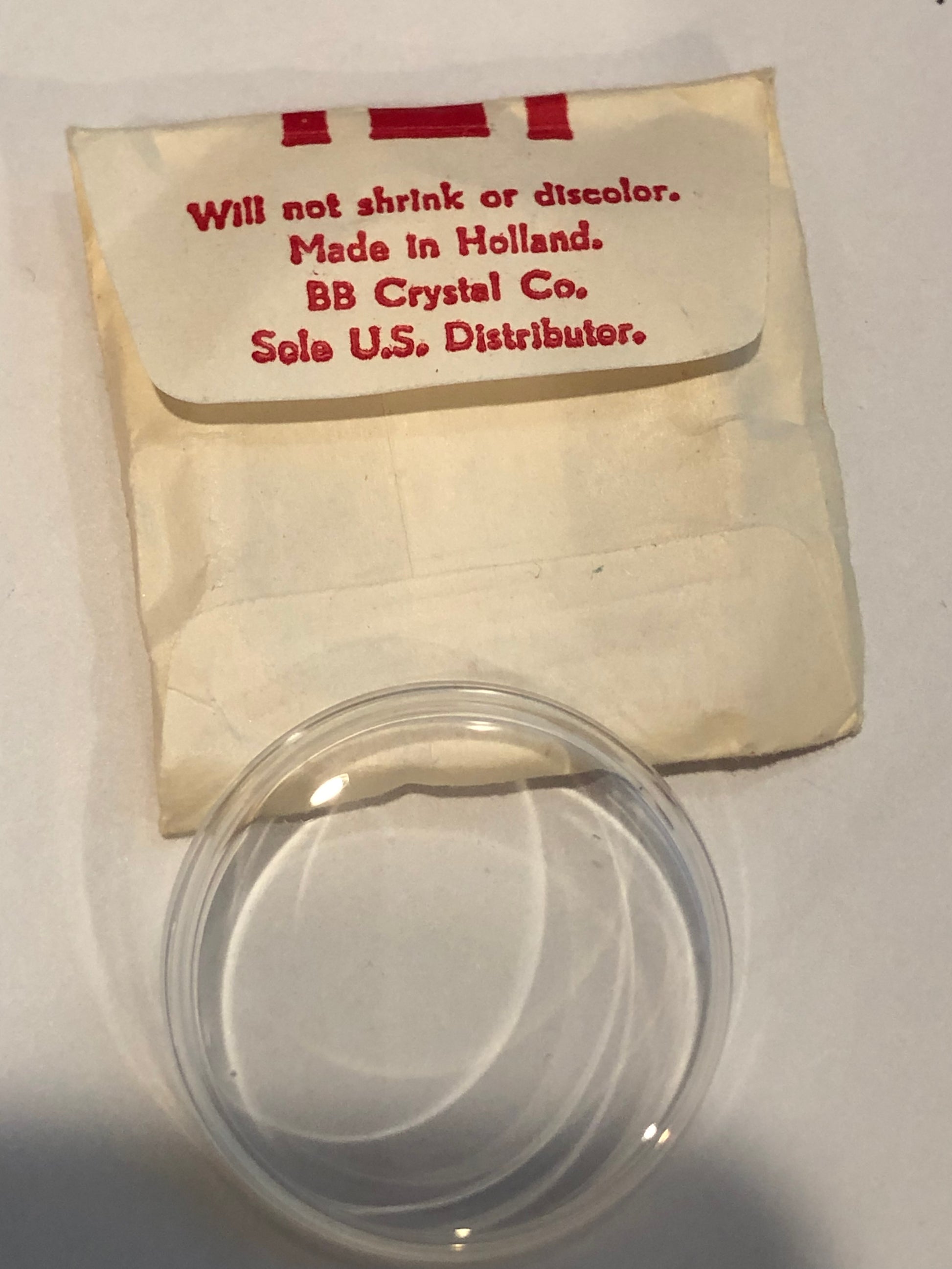 Stella XHEC 336 - 33 Wedge-Ledge Extra High Domed Waterproof Wrist Watch Crystal, 33.6mm, new in envelope. Stella crystals are very high quality crystals and these are perfectly clear NOS crystals that haven't been stored for 75+ years like other ones on eBay often are. Can supply just about any size Watch Crystal you need (acrylic or glass) so feel free to inquire. I specialize in hard to find watch parts and all watch parts are unconditionally guaranteed. Images do a pretty good job of representing the item.
