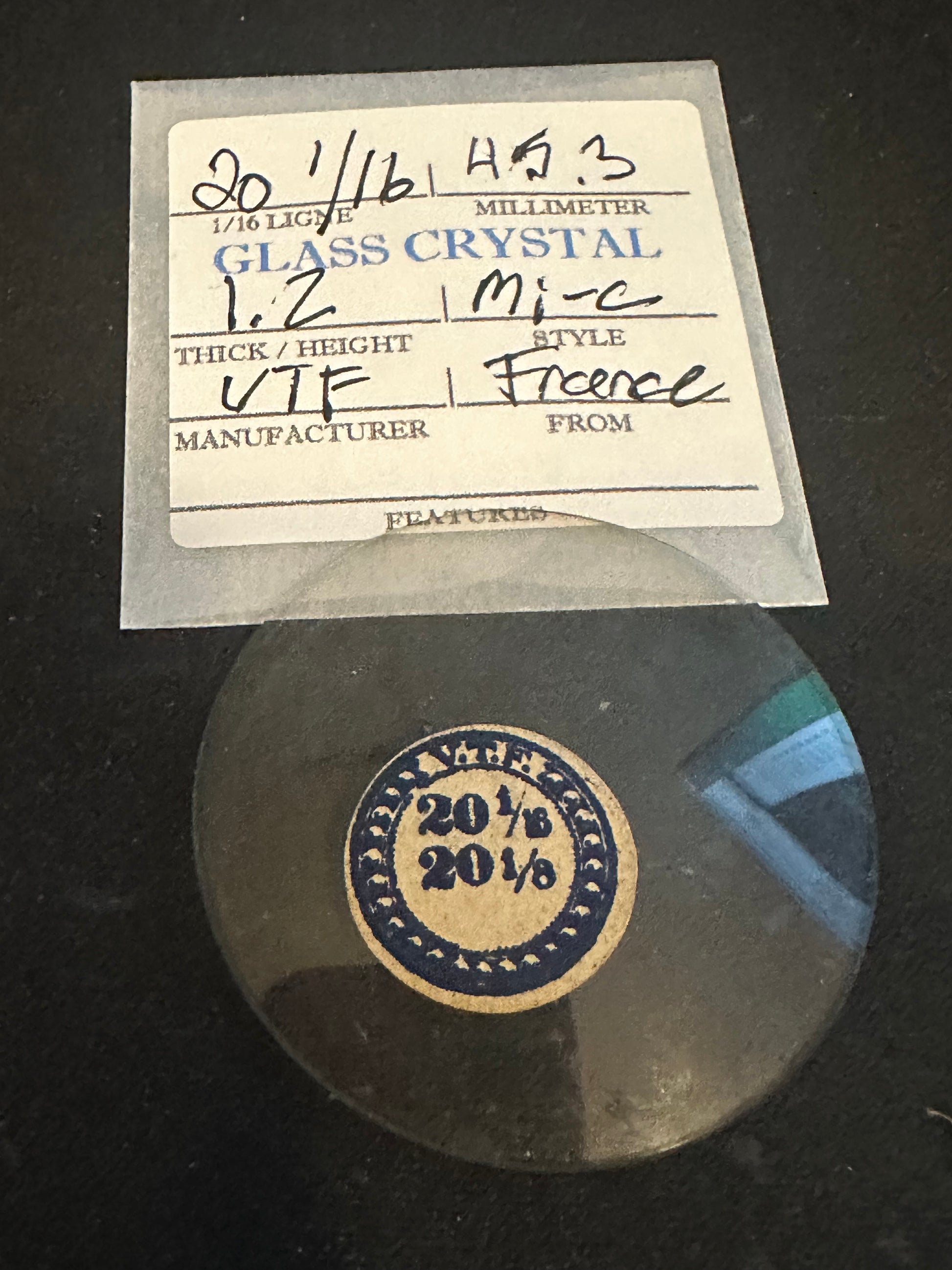 VTF Vintage Glass Pocket Watch Crystal 20-1/16 (~45.3mm) - NOS